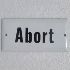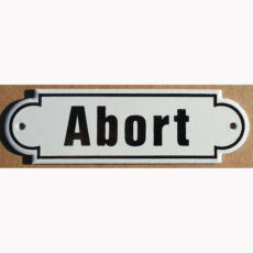 Das emaillierte Hinweis- und Türschild mit der Aufschrift “ Abort “ hat die Größe von ca. 10 x 5 cm