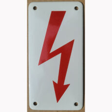 Das emaillierte Hinweisschild mit der gezeigten Motiv „Blitzpfeil“ hat die Größe von ca. 15 x 7,5 cm und ist stilvoll in gewölbter Ausführung hergestellt.