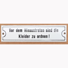 Das Emailleschild ist 33,5 x 9 cm groß und in flacher Ausführung hergestellt.