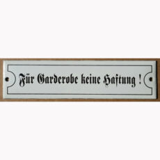 Das emaillierte Hinweis- und Türschild mit dem „Sauberkeitsspruch“ hat die Größe von ca. 15 x 10cm.