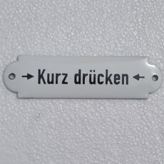 Das emaillierte Hinweis- und Türschild mit der Aufschrift “ kurz drücken “ hat die Größe von ca. 12x3cm.