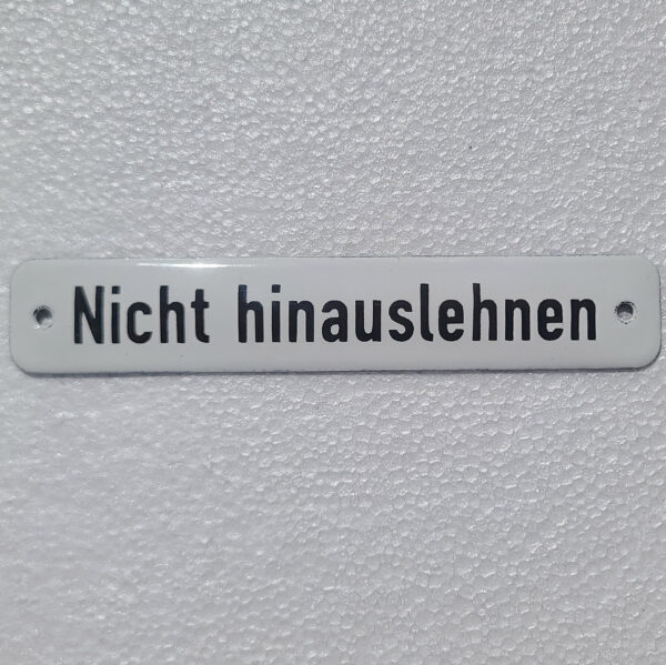 Das Schild ist 148 x 26 mm groß und in gewölbter Ausführung hergestellt. Dies ist die Original Schildgröße der Schilder, welche früher an fast jedem Zugfenster befestigt waren.