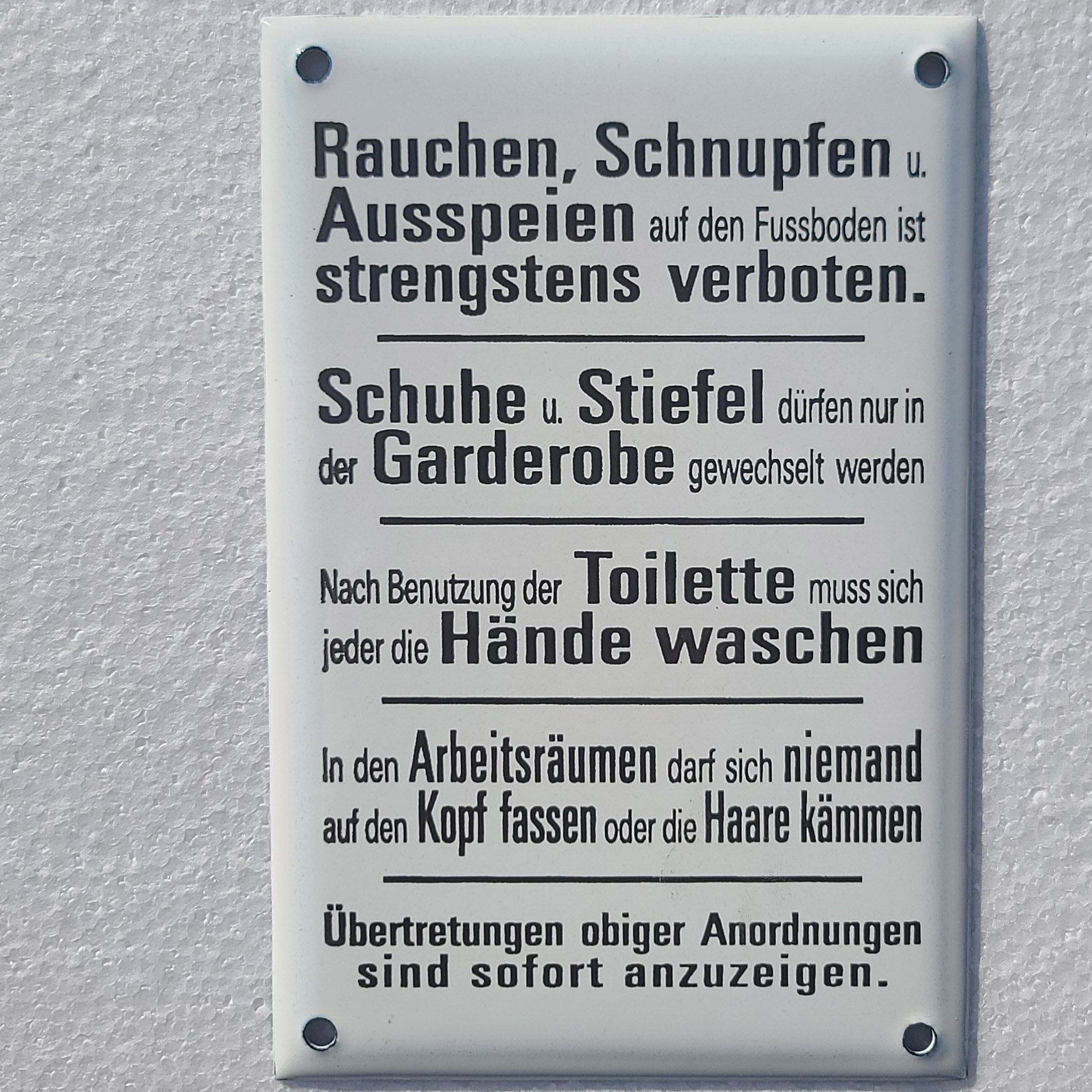 Startseite / Geschenkartikel - FUN Sprüche - Partykeller / Rauchen, Schnupfen, Ausspeien…..Rauchen, Schnupfen, Ausspeien…..€18,00 inkl. 19 % MwSt. zzgl. VersandkostenDas emaillierte Hinweisschild ist 18 x 12 cm groß. Rauchen, Schnupfen, Ausspeien..... Menge In den Warenkorb Beschreibung BeschreibungSie erwerben hier ein echtes Emailschild, kein Plastik- oder Lackschild!!Das emaillierte Hinweisschild ist 18 x 12 cm groß.Ähnliche Produkte No Riesling No PartyDas Emailleschild ist 16 x 4 cm groß und in gewölbter Ausführung hergestellt.inkl. 19 % MwSt.zzgl. Versandkosten ScheißhaislDas emaillierte Türschild mit der Aufschrift “ Abort “ hat die Größe von ca. 14 x 3,5 cm.inkl. 19 % MwSt.zzgl. Versandkosten Spülen und Abortdeckel schließenDas emaillierte Hinweisschild ist 13 x 4 cm groß.Und die Gäste wissen was zu tun ist…..inkl. 19 % MwSt.zzgl. Versandkosten Lass die FingerDas emaillierte Hinweisschild ist 15 x 10 cm groß und ist in gewölbter Ausführung hergestellt.inkl. 19 % MwSt.zzgl. Versandkosten
