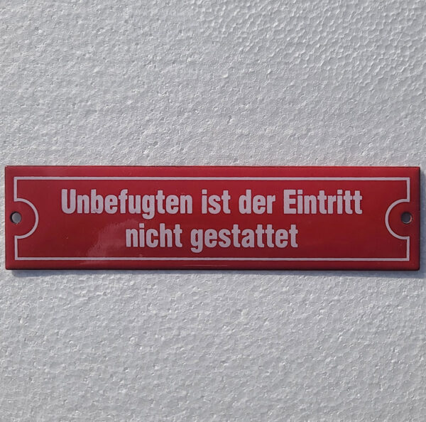 Das emaillierte Hinweisschild ist 16 x 4 cm groß und in gewölbter Ausführung hergestellt.
